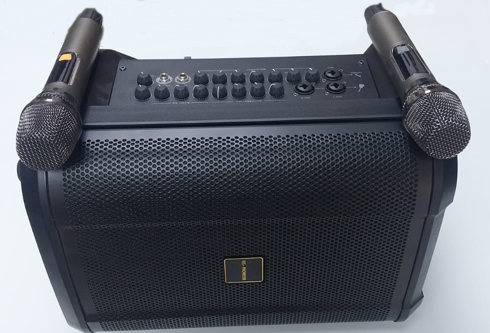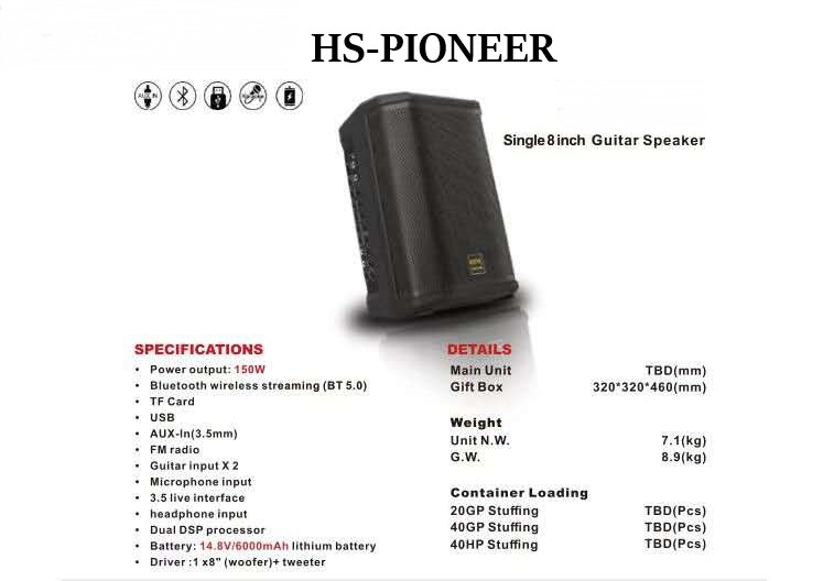 SPECIFICATIONS . Power output: 150W Bluetooth wireless streaming (BT 5.0) TF Card USB AUX-In(3.5mm) FM radio Guitar input X 2 Microphone input 3.5 live interface headphone input Dual DSP processor Battery: 14.8V/6000mAh lithium battery Driver: 1 x8" (woofer)+ tweeter